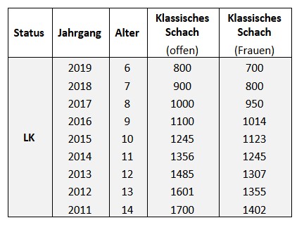 In den einzelnen Bundesländer bleibt es beim Landeskader, dem man allerdings nur noch bis zum 14. Lebensjahr angehören kann. Außerdem gibt es nun strikte DWZ Schwellen, die erreicht werden müssen.