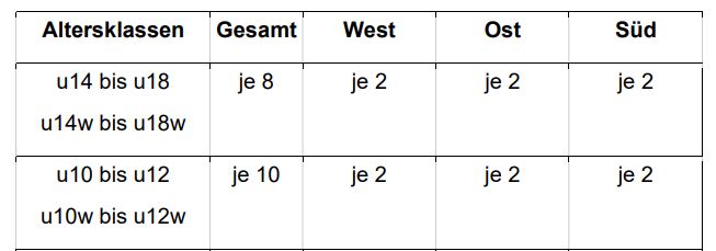 Altersklassen u10 bis u12/ u10w bis u12w maximal vier Freiplätze.